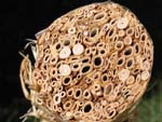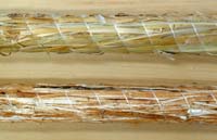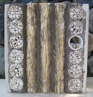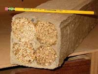 StrawJet ajoute ensuite un liant constitué d’argile, comprime le tout et le lie en une tige continue d’environ 5 cm de diamétre en utilisant une fil polyester résistant. Une fois l’argile sèche, on obtient un cylindre rigide