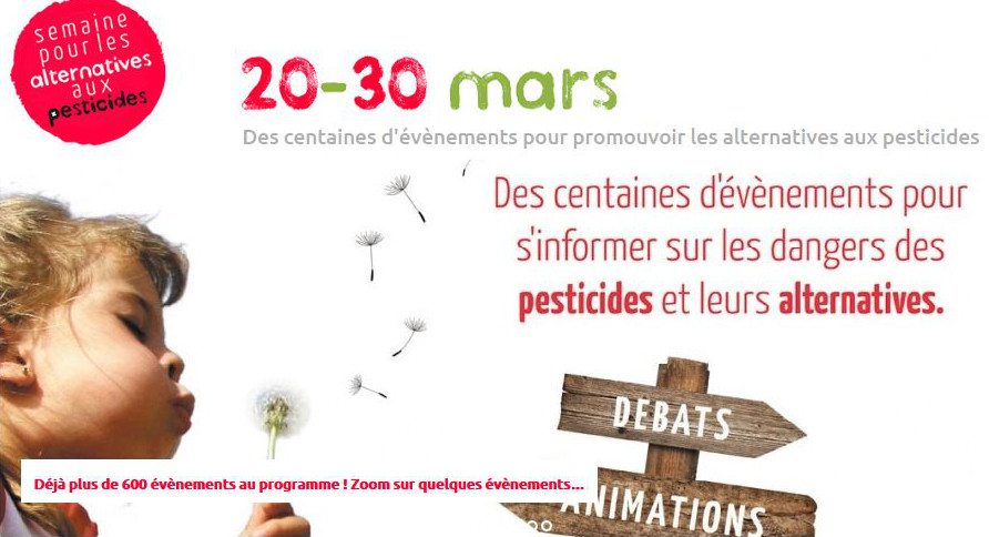 A l’occasion des 10 premiers jours du printemps, du 20 au 30 mars 2013 se tiendra la 8ème édition de la Semaine pour les alternatives aux pesticides. 10 jours pendant lesquels tout le monde est invité à se mobiliser pour un avenir sans pesticides.