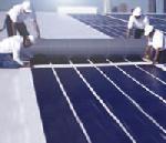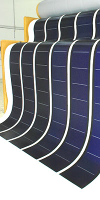Technique : le silicium amorphe est déposé sur une membrane polymère, polyuréthane ou polyamide, qui peut-être enroulée sur une toiture de n'importe quelle forme, ce qui élargit son champ d'application. Cette pose simplifiée annihile tout risque de casse lors du transport ou de la manutention. Pour réussir cette nouvelle génération de toits solaires, Henkel a mis au point de nouveaux adhésifs et enduits étanches (Macromelt et Purmelt) pour fixer les modules solaires aux membranes des toits et souder les bords entre eux. Quatre à six modules peuvent ainsi être laminés sur une membrane étanche en polymère d'une longueur de six mètres et de deux à trois mètres de large, afin de former un panneau solaire. Le panneau pourra ainsi être étalé directement et relié à un nombre infini d'autres panneaux.