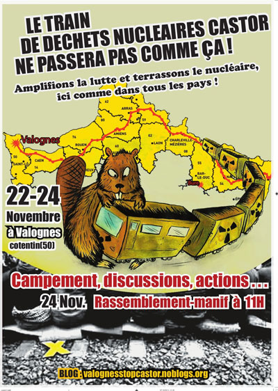 Le 24 novembre prochain, un train de déchets nucléaires allemands extrêmement dangereux, quittera le terminal ferroviaire de Valognes dans la Manche à 14h20 pour rejoindre le centre de stockage temporaire de Gorleben en Allemagne.